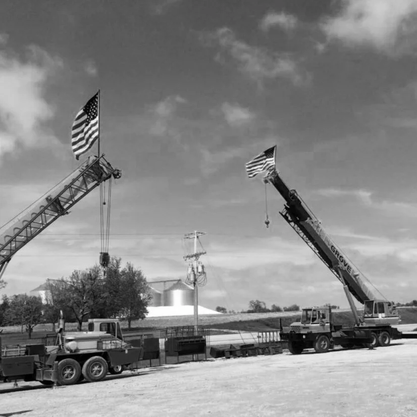 Palmer Repair owns two cranes. Our small crane ranges to as far as 135 ft and can handle as much as 25 tons of weight. Our large crane ranges to 145 ft and can handle as much as 50 ton of weight. ALL DEPENDING ON DISTANCE FROM WORK.